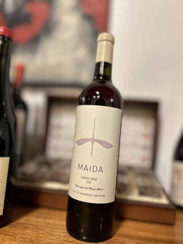 Fiel a la filosofía agroecológica de la finca, este vino se elabora con mínima intervención: fermentación espontánea en piletas de cemento con levaduras indígenas y crianza en cemento y barricas. El corte reúne Cereza, Criolla Chica y Canarí, uvas históricas de Argentina que encuentran aquí una expresión fresca y vibrante. Con apenas 12,6 % de alcohol, Maida Criollas Tintas es ligero, natural y cargado de identidad.